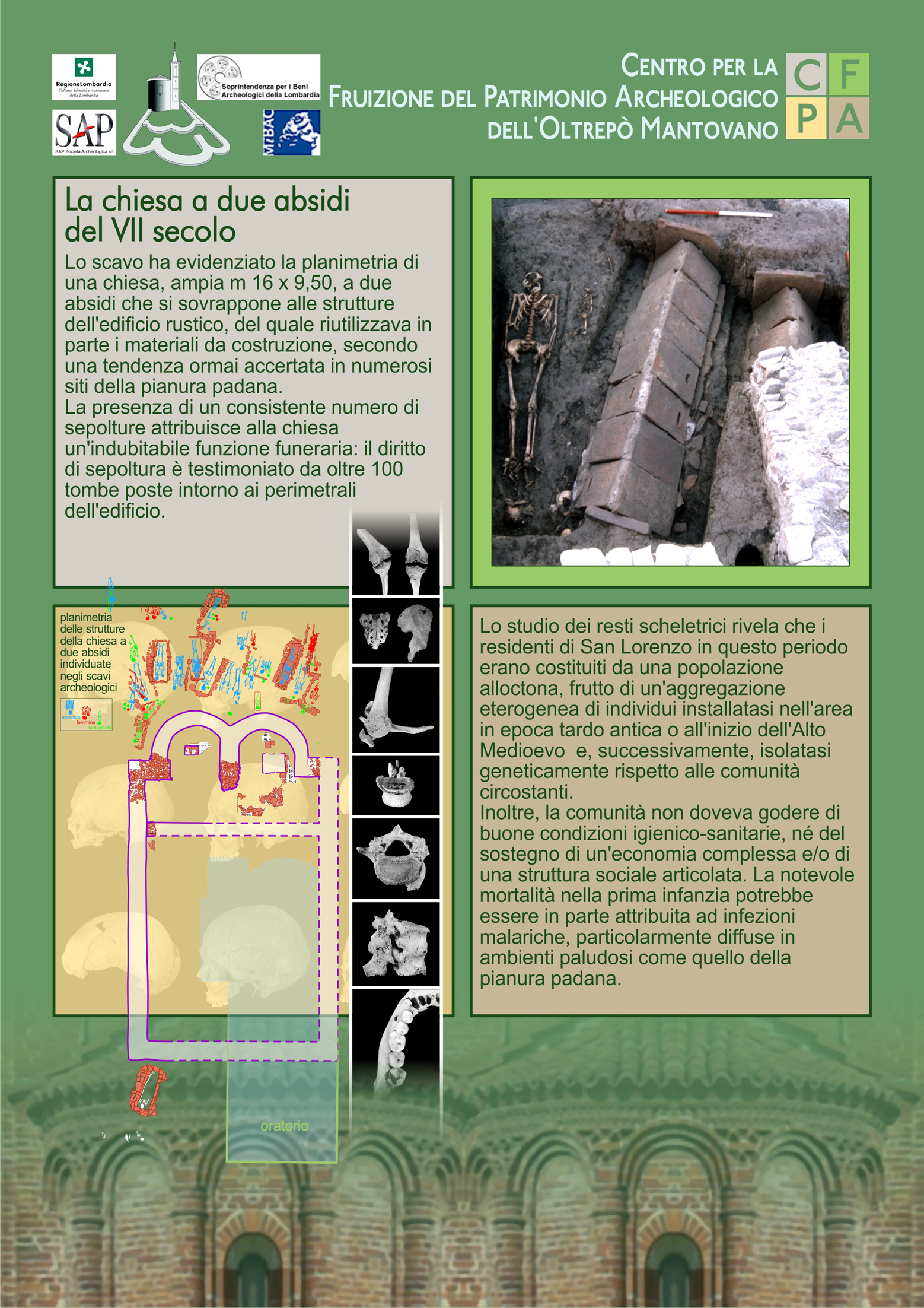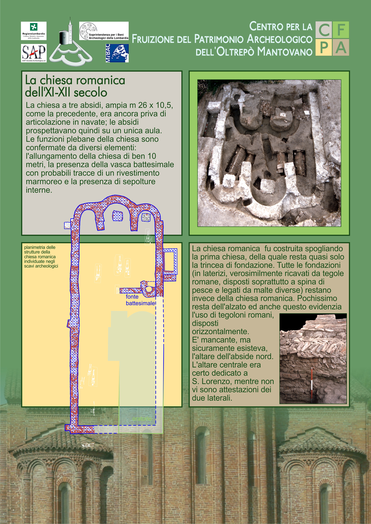 Lungo la SP 43, in direzione Ostiglia, in Località San Lorenzo si trova l’Oratorio dedicato alla Beata Vergine di Loreto e costruito utilizzando parte del materiale della demolizione nel 1751 dell’originale parrocchiale di epoca matildica, di cui è possibile vedere la traccia dell’antico perimetro all’interno dell’area archeologica di proprietà comunale. Il sito di San Lorenzo è stato oggetto di indagini archeologiche tra il 1995 e il 1997.